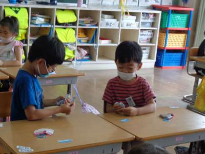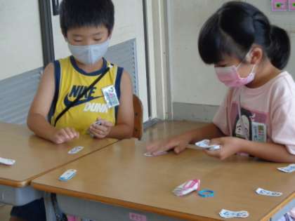 計算カードで「どちらが大きい」のゲームをしました。瞬間的に答えられる子が多くなってきました!