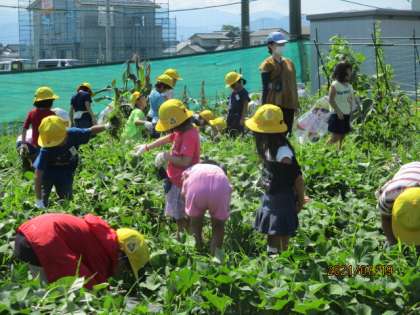 【2年生】サツマイモのお世話 公開日 2021/07/19 更新日 2021/07/19 2年生 1・2年生合同でサツマイモの蔓をマルチの上にのせて、通路の草むしりをしました。熱い日差しの中での活動だったため、短時間で終えました。それでも、子供たちからは滝のような汗が流れていました。