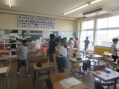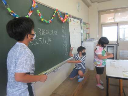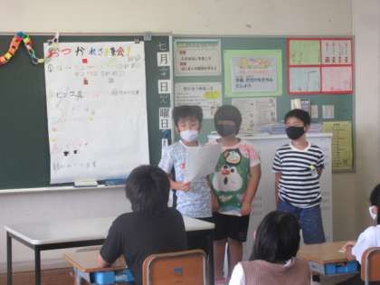 1学期おつかれ様集会を行いました。それぞれの係から出し物をしています。