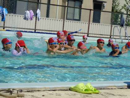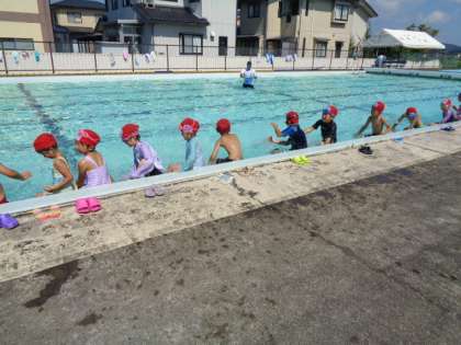 【1年生】1学期最後のプール 公開日 2021/07/20 更新日 2021/07/20 1年生 「宝探し」「だるまさんが転んだ」「だるま浮き」をしました。水に潜れたり浮いたりできる子が随分増えました。夏休み中もぜひプールに来て、練習してくださいね。