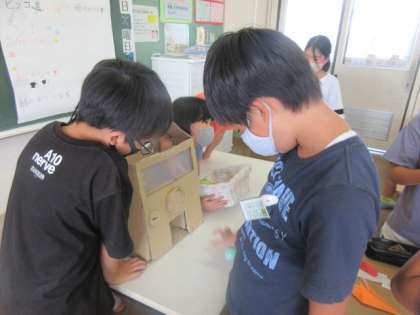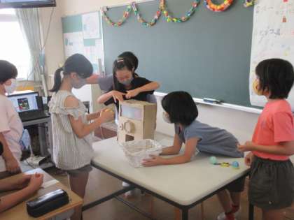 工作係から、自分たちで作ったガチャポンをみんなでまわしました。わくわく感がありみんな楽しんでいました。