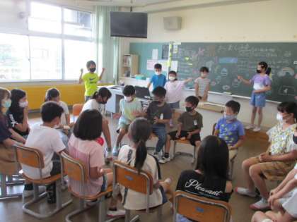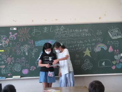 1学期も明日で終わりです。その前にクラスのみんなでお楽しみ会を行いました。子供たちは、係ごとに出し物を考え、みんなが楽しめるように意欲的に活動していました。どの係の出し物も楽しく、みんなで盛り上がりました。また、お楽しみ会の前に目当てを言ったり、終わったあとに振り返りの時間をとったりする子供たちの姿もよかったです。
