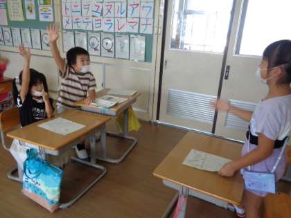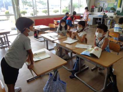 国語「ききたいな、ともだちのはなし」の学習で、それぞれの夏休みの思い出を伝え合いました。たくさん質問して、友達の話を詳しく聴くことができました。明日も続きを行います。
