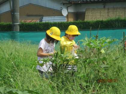 野菜畑で最後の野菜の収穫とお世話になった野菜畑の片付けを行いました。収穫した野菜は大きくなりすぎてお化けになっていました。