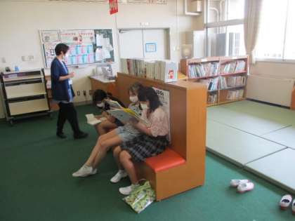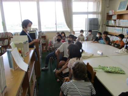 国語科「事実にもとづいて書かれた本を読もう」の学習で、ノンフィクションの本を読むため、クラスのみんなで図書室に行きました。司書の先生からノンフィクションの本の紹介を聞いた後、それぞれが読みたい本を選んで読みました。物語だけでなく、ドキュメンタリーや伝記にもふれる機会になりました。