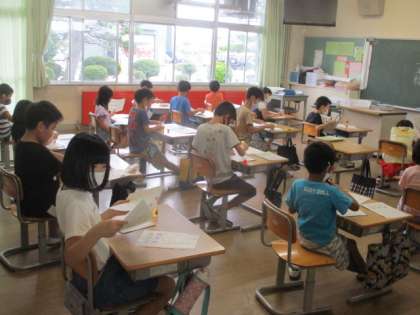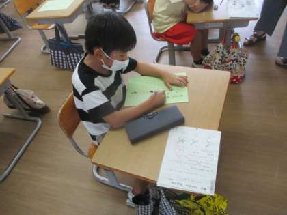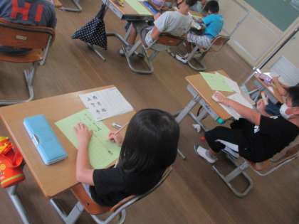 2学期に入って、初めての書写がありました。一学期に書いた書写のプリントを見直し、丁寧に綴じました。自分の書いた文字をしっかり見つめ、2学期の書写の目当てを立てました。