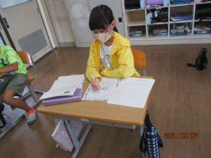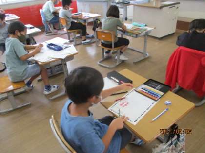 野菜の学習がいよいよまとめに入りました。学習を通して野菜の育て方や、継続してお世話を続ける大変さを体験を通して学びました。今日は、これまでのことを振り返って大変だったことやうれしかったことを思い出してプリントに書きました。早く終わった子は表紙も作りました。