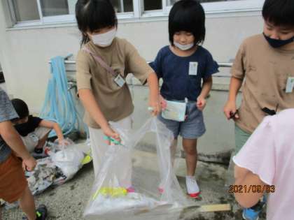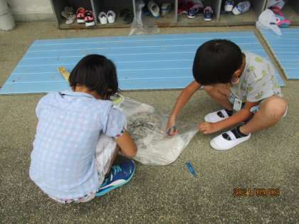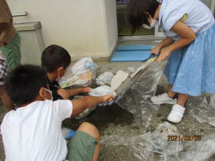 生活科の時間に2年生の野菜畑を見守ってくれたかかしの解体作業をしました。自分から進んで活動に取り組む、働き者の2年生のおかげで予定していた時間より早く終えることができました。