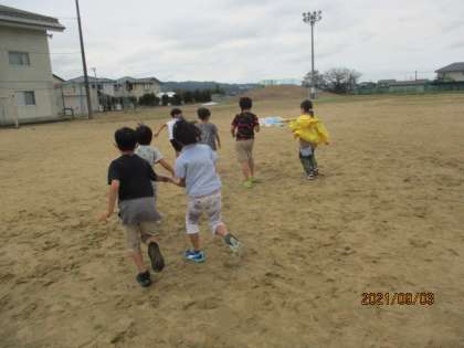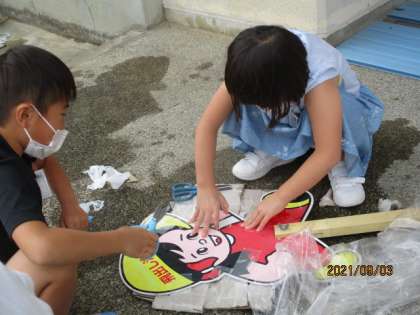 活動の様子です。きれいになったかかしを元の場所まで片付けに行きました。