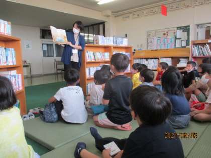 2学期に入って最初の読み聞かせを司書の先生にしていただきました。