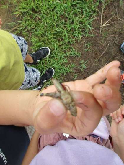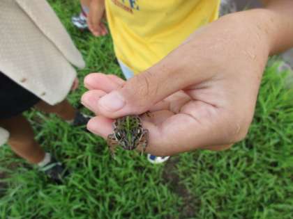 カエルも見付け、つかまえた子はとても嬉しそうでした。