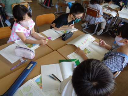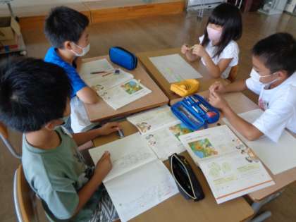 国語の学習では、話し合いを通して「山小屋で三日間過ごすなら」というテーマで友達と一緒に意見を広げたり、まとめたりする活動をしました。