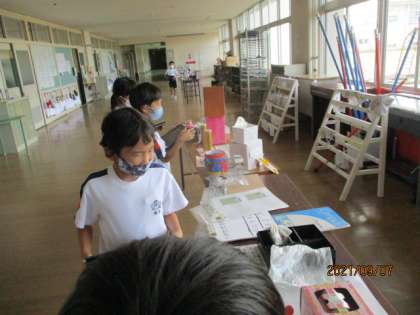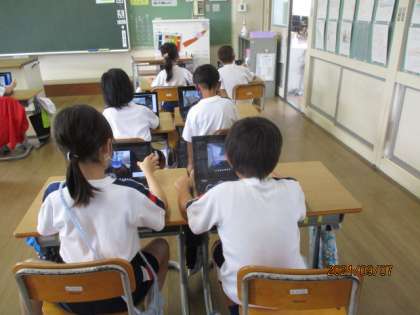全校の夏休みの自由研究や自由工作を見学しに行きました。クロムブックを持って3階から順番に、自分が気に入った作品やすてきな作品を写真に撮って収めました。教室に戻ってきてすてきだと思ったポイントを写真に書き込みました。