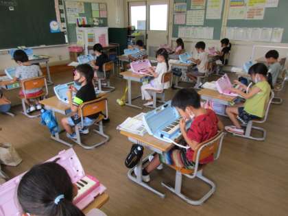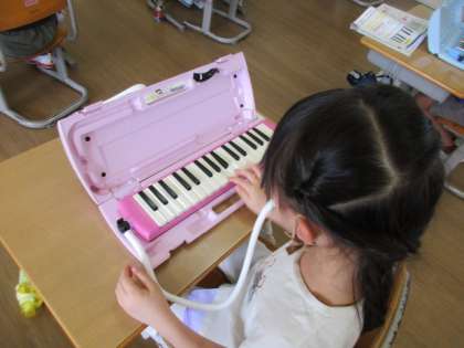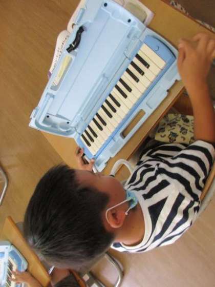 今日は、音楽の授業で初めてけんばんハーモニカを使いました。