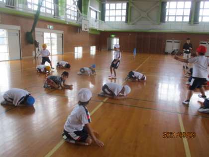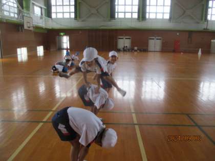 【2年生】体育 公開日 2021/09/08 更新日 2021/09/08 2年生 2年生になり、初めて馬とびにちょうせんしました。友達が跳べる高さを調整したり、馬の間隔を考えたり、工夫して跳んでいました。馬とびの後、久しぶりに「猫とネズミ」をしてよい汗をかきました。