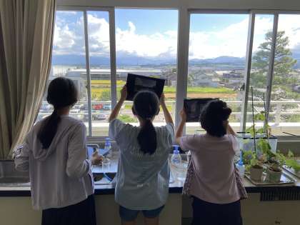 図工の学習では、この学び舎の中で、心に残っている場所やお気に入りの場所、大切な場所について絵に表していきます。そのための前段階として、校舎の内外を歩き回り、クロムブックで写真を撮りました。視点を変えながら、工夫して撮っていたようです。