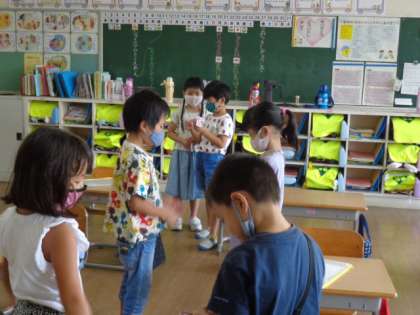 いつものペアを変えて計算カードをしました。速くなってきて、子供たちは自信がついてきたようです。