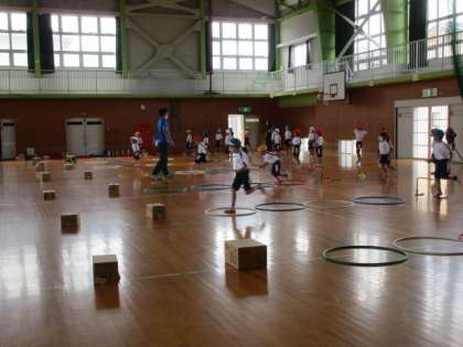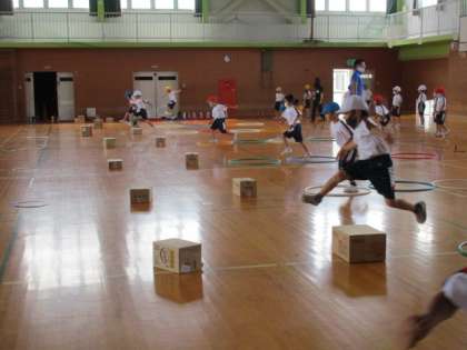 今日は、最後の「とんであそぼう」の学習でした。体の使い方がとても上手になってきて、フラフープだけでなく、箱や少し高いハードル等もらくらく跳び越えられるようになりました。