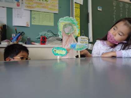 【1年生】国語 公開日 2021/09/14 更新日 2021/09/14 1年生 自分たちで作ったペープサートを使って音読劇の練習をしました。台詞の言い方や動かし方等、実際にやってみると分かることがたくさんありますね。