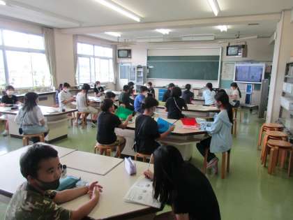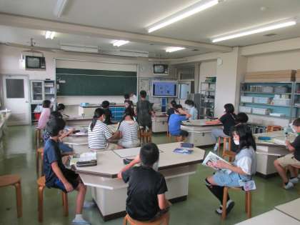 理科の授業を楽しみに待つ子供たちです。