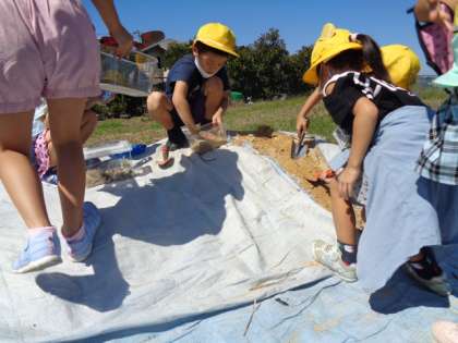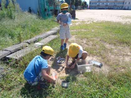 今日は自分の計画に従って、虫のすみかを作りました。虫が快適に過ごせるように、土や石、草や水を準備していました。