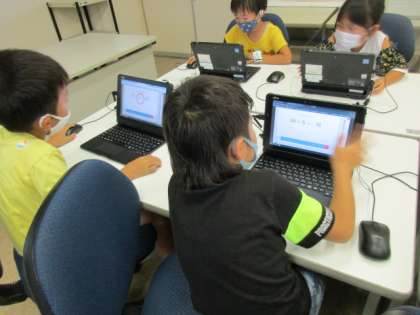 コンピュータ室のパソコンにはデジタル教科書が入っており、算数の問題に繰り返し取り組むことができます。今日は「10よりおおきいかず」のいろいろな問題を時間いっぱい頑張りました。