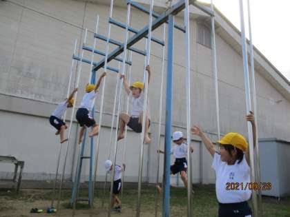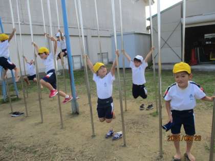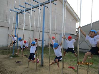 のぼり棒で1分間チャレンジに今日も挑戦しました。前回よりも記録が伸びたと嬉しそうに報告してくれる子もいました。