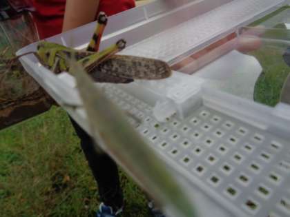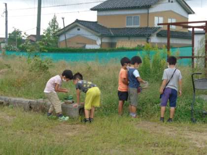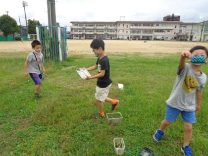 今日は飼育していた虫を放す日でした。虫とすっかり仲良くなった子供たちは、初めは全員が「放したくない」と言いました。虫にとっては、元の自然に帰った方が幸せかもしれないと話し合った後は、半分の子が虫を放すことに決めました。中にはお別れがつらくて涙する子もいました。どうしてもまだ飼いたい子は、お家の人と相談して決めることを話し、持ち帰りました。この学習を通じて、虫について学ぶだけでなく、「可愛い」と思う心、相手の立場を考える心など、たくさん感じ取った子供たちでした。保護者の皆様、たくさんの準備物を用意してくださりありがとうございました。