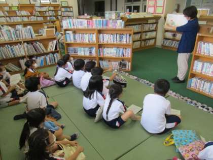 【1年生】本の読み聞かせ 公開日 2021/10/01 更新日 2021/10/01 1年生 司書の先生に「さるじぞう」を読んでいただきました。 最後に礼儀正しく「ありがとうございました」と言える子供たちの姿が本当に素敵でした。