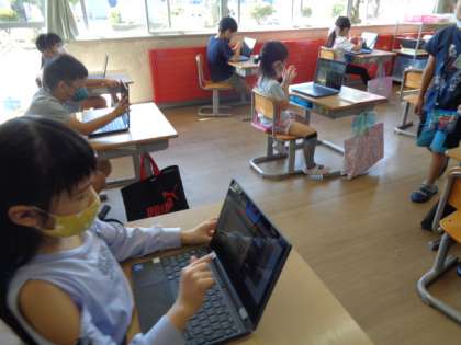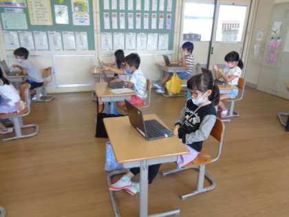 【1年生】クロムブックで計算練習 公開日 2021/10/04 更新日 2021/10/04 1年生 今日は「3つの数の計算」をクロムブックで練習しました。自分のペースで進められることができるので子供たちは楽しそうでした。