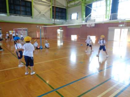 【1年生】ボンバーゲームラスト 公開日 2021/10/04 更新日 2021/10/04 1年生 ボンバーゲームは今日が最終日でした。どのチームも一生懸命玉を追いかけ、キャッチし、投げ入れていました。試合の後は、ボンバーゲームでできるようになったことを話し合い、まとめを行いました。