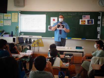 【5年生】ALTと外国語科の学習 公開日 2021/10/05 更新日 2021/10/05 5年生 10月から、新しいであるALTケビン先生と外国語科の学習が始まりました。まずは、自己紹介ををしてケビン先生のことを詳しく知ることが出来ました。ケビン先生と楽しく外国語を学びましょう。