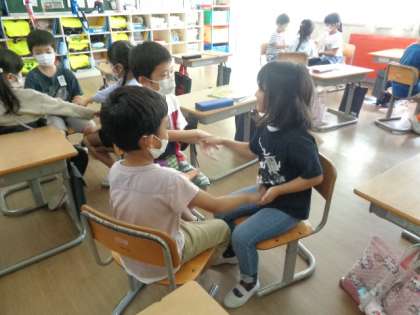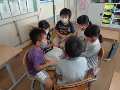「あんたがたどこさ」に合わせてリズム遊びをしています。今日は少し多い人数でやってみました。