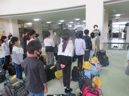 4年生 宿泊学習1 出発式 公開日 2021/10/13 更新日 2021/10/13 4年生 10月11日(火)〜12日(水)まで宿泊学習に行ってきました。子供たちは、学年目標である「Let's think」を目当てに、自分たちで考え、行動しようと活動に取り組みました。初めての宿泊学習で、不安なこともあったと思います。しかし、友達と様々な活動の中でたくさんの発見、成長を感じることができた二日間にもなったと思います。 二日間の宿泊学習の様子をお伝えします。