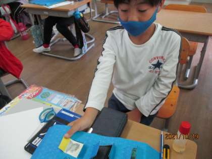 図工の学習で、窓を開けたら何が出てくるかを考えて今日の学習ではカッターを使って窓を作るところまでしました。早い人は別の紙に絵を描いて貼り付けまで行いました。