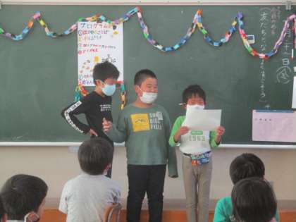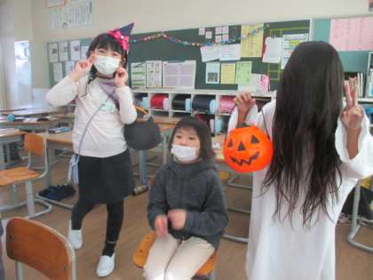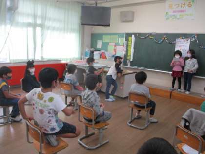 【2年】 お楽しみ会 公開日 2021/10/22 更新日 2021/10/22 2年生 学級のはなまるが21個たまったので、待望のお楽しみ会を開きました。はじめの言葉やプログラム作り、飾り付けなど、出し物の準備を子どもたちがすべて行い、とても楽しみにしていました。おばけ屋敷や宝探し、クイズ大会を行い、楽しいひとときを過ごしました。