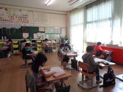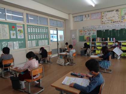 今日は繰り上がりの足し算のテストを行いました。問題をしっかり読んで、一人一人真剣に頑張っています。