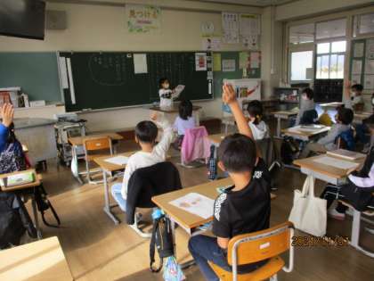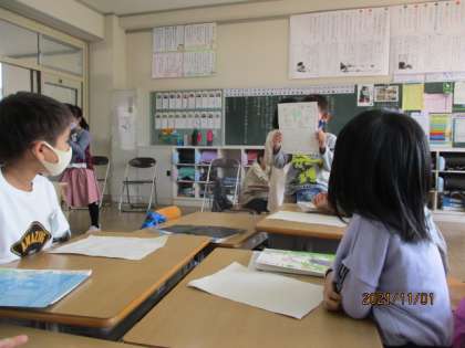 国語の学習で秋を感じたときのことをグループで発表しました。