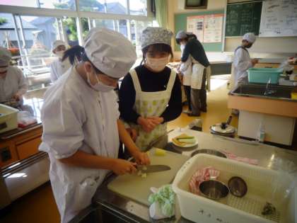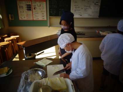 今日は、調理実習として味噌汁を作りました。食材を切ったりお味噌をといたりと班のメンバーと協力して取り組んでいました。担任やお世話になっている先生方に、味噌汁を渡しました。思いやりの5年2組の子供たちの姿が、素晴らしいと感じました。
