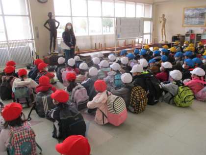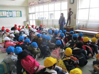 今日は待ちに待った1・2年生合同校外学習の日でした。子供たちは前からこの日を待ちわびていました。出発式では、目当てを確認しました。