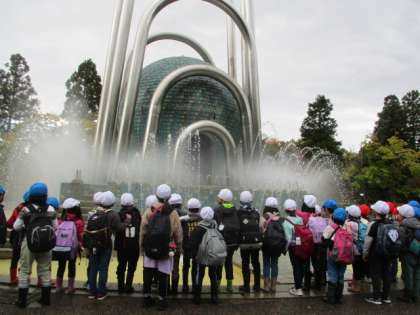 みらい館への道中に100年の泉で水のアートを見ました。