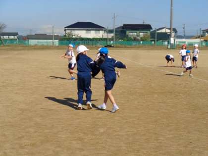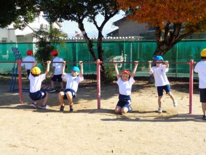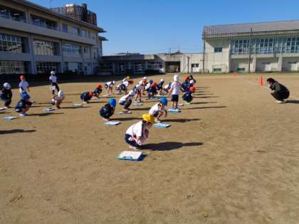 久々に晴天の下、外で体育をしました。今日は「手つなぎ鬼」と、鉄棒は「つばめ」「自転車こぎ」「前回りおり」「地球周り」に挑戦しました。子供たちは楽しそうに体を動かしていました。
