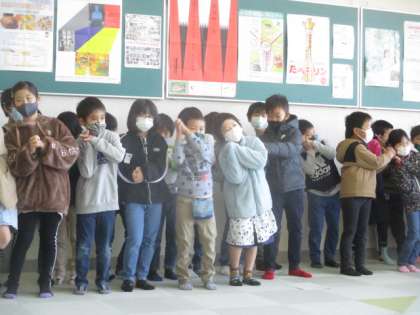 【2年生】感謝ふれあい集会の練習 公開日 2021/11/17 更新日 2021/11/17 2年生 感謝ふれあい集会では、お世話になっている地域の方をご招待し、2年生は感謝の思いを込めて、肩たたきや手遊びをする予定になっており、今日はその練習をしました。