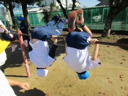てつぼうの学習も残りあと1回となりました。今日は、新しい技「つばめ」「じてん車こぎ」「まえまわりおり」にも挑戦しました!鉄棒名人がどんどん増えています。