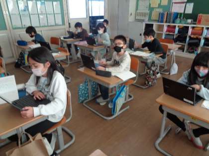国語で学習した大豆の他に、姿を変える食べ物がないか調べました。自分たちの身の回りにある食品にはいろんな「元の姿」があることに、子供たちも調べながら驚いていました。