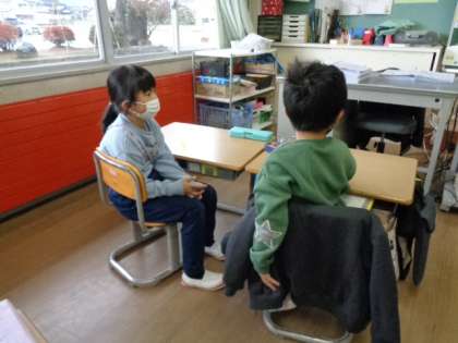 友達の「一番楽しいこと」をインタビューする学習を進めています。今日はたくさんの質問をして詳しく知ることができました。