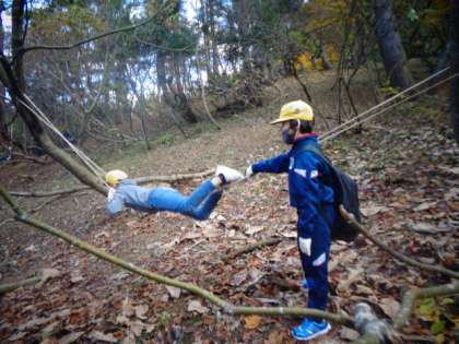 ワイルド遊びの様子です。友達と協力してブランコやターザンロープを作っていました。