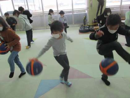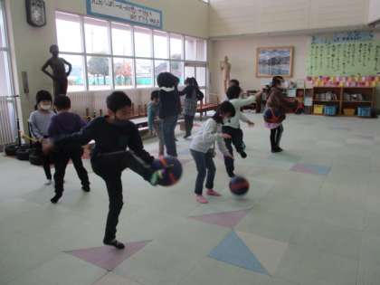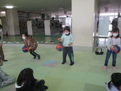 先週学習した童歌の中から、「あんたがたどこさ」をボールを使ってしました。