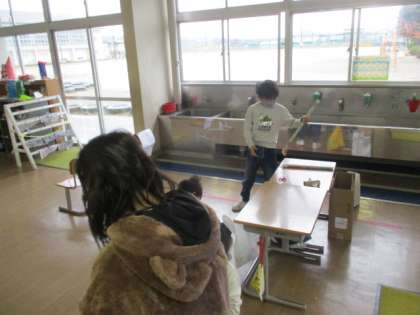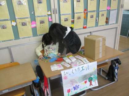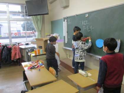生活科のワクワクおもちゃランドでついに待ちに待った一年生招待をしました。写真は一年生招待を目前に準備を頑張っている様子です。