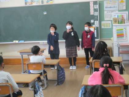 一年生さんを招待しに代表児童が教室に行きました。その後各おもちゃコーナーの説明をしました。